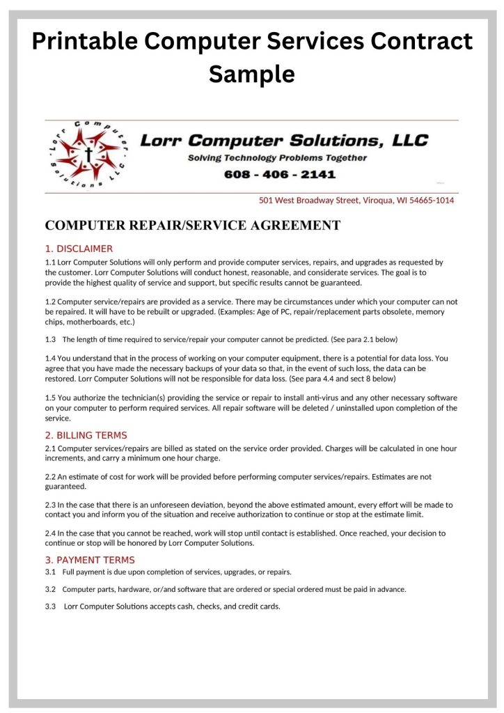 Obtain Free Computer Service Contracts Template from my website.Get from different filetype for instance Pdf, Otd, Micrsoft Document, Rtf, Google document, Zip, Microsoft Docx.