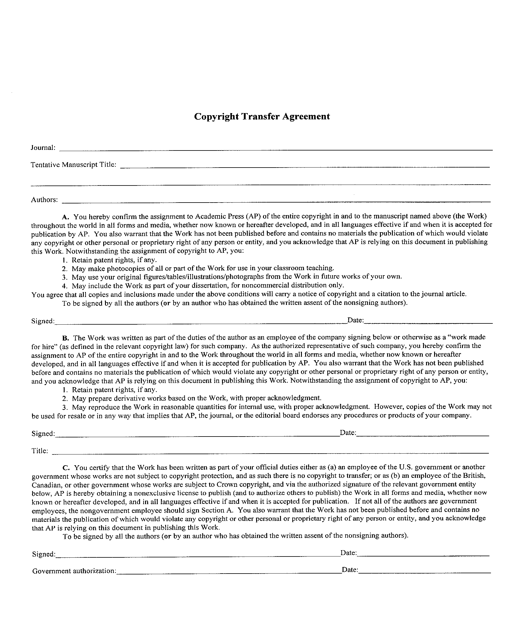 Copyright Transfer Agreement Template