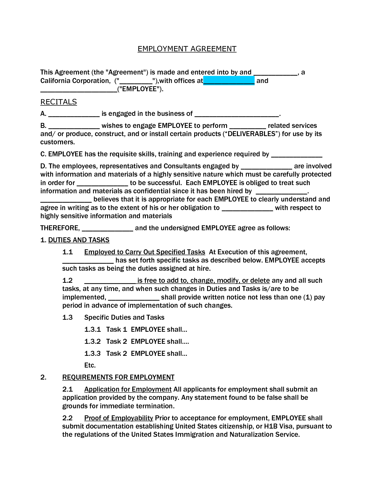 Employment Contract Document