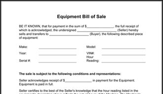 Equipment Bill Of Sale Template form