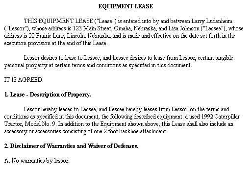 Obtain Sample Equipment Leasing Agreement from various filetype for example Pdf, Micrsoft Document, Zip, Microsoft Docx, Rtf, Otd, Google document. Just Access it through our website.