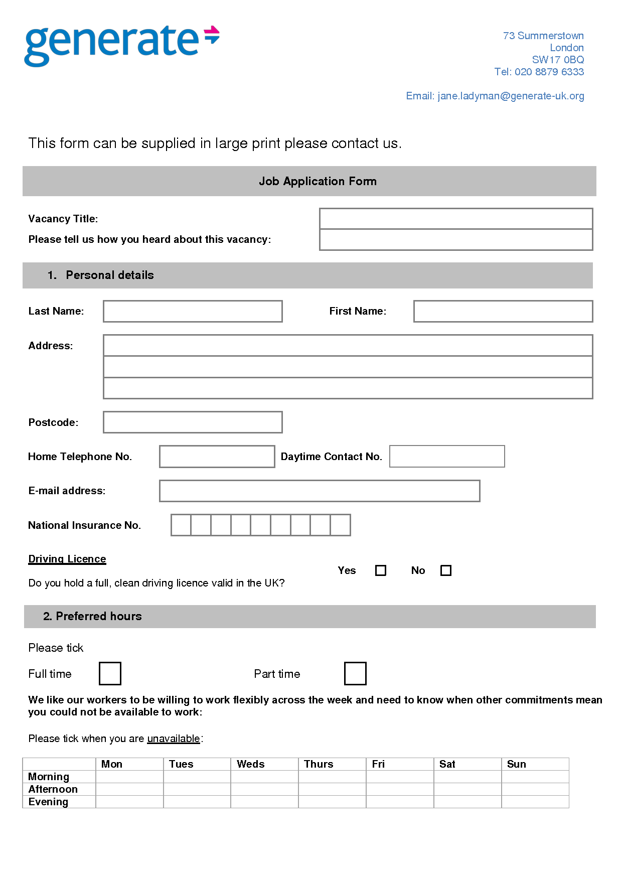 Print Free Job Application Form Template Printable from various filetype for example Rtf, Otd, Micrsoft Document, Zip, Pdf, Google document, Microsoft Docx. Just Download it from this site.