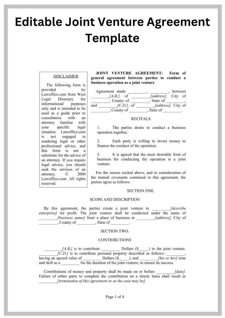 Get Free Joint Venture Agreement Sample Forms from this site.Download from any filetype such as Micrsoft Document, Zip, Google document, Rtf, Microsoft Docx, Pdf, Otd.