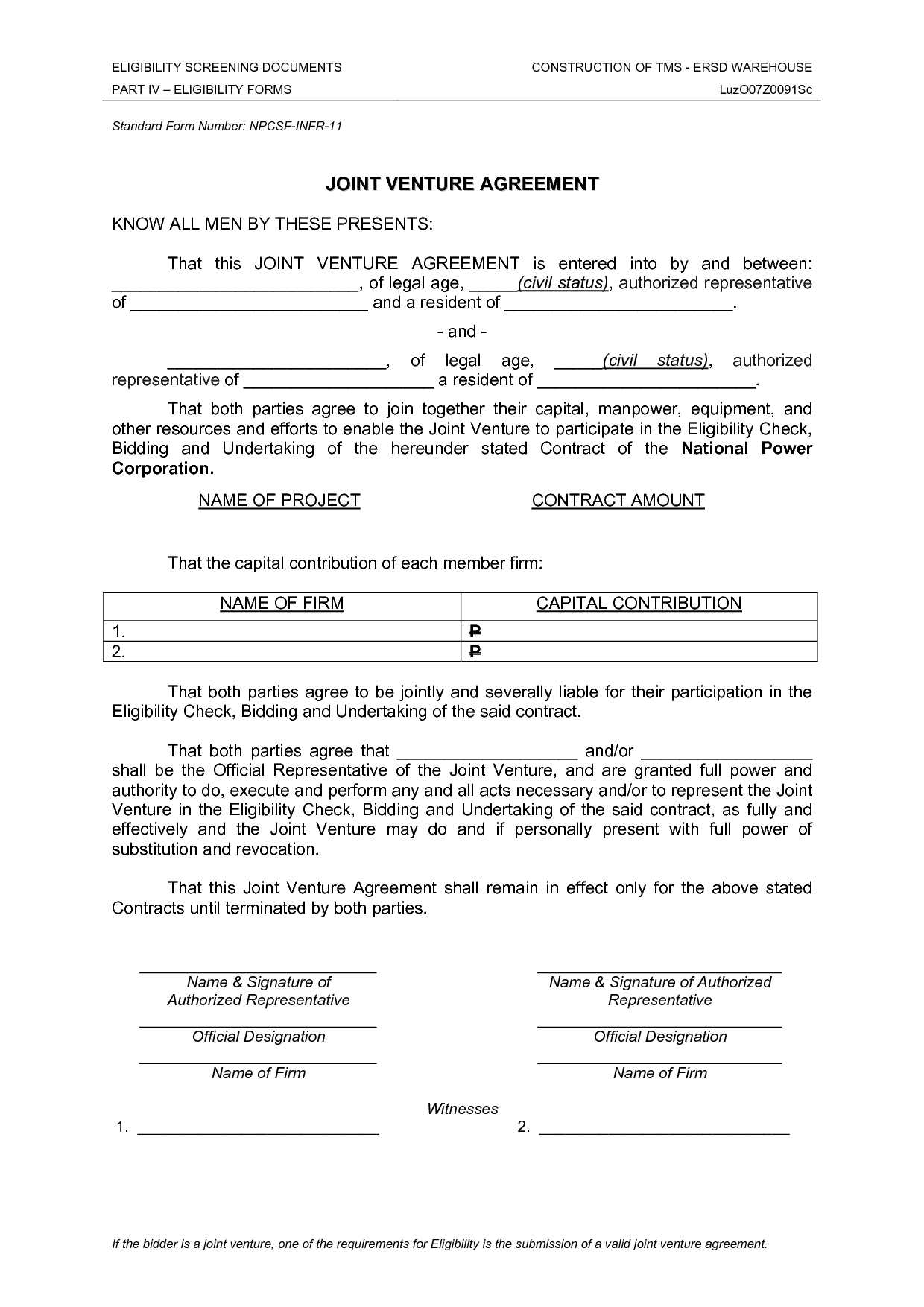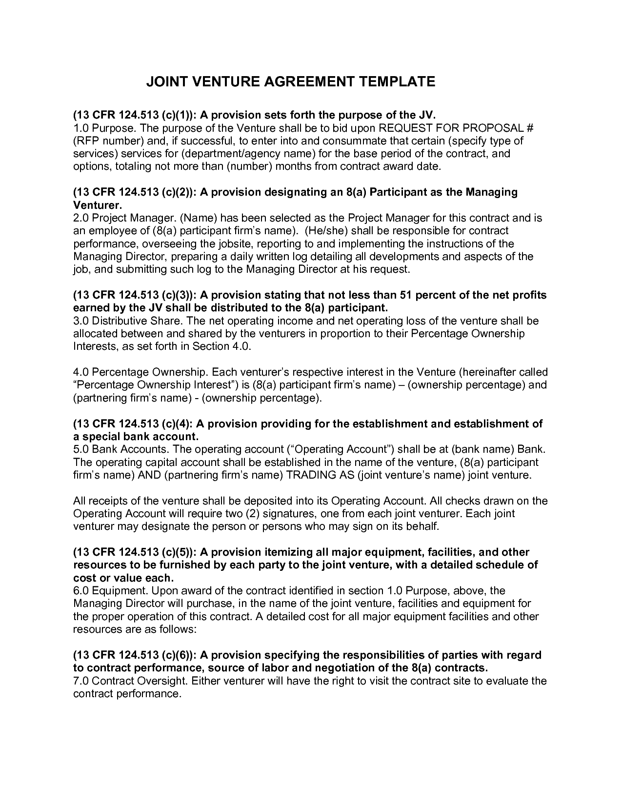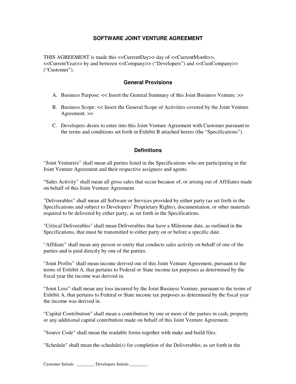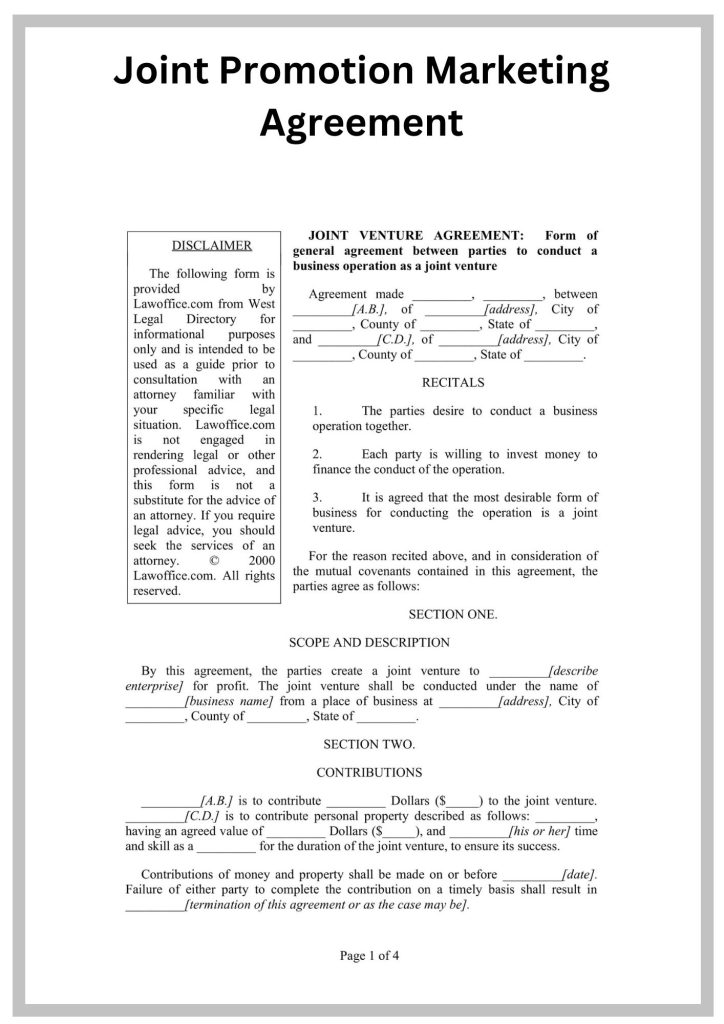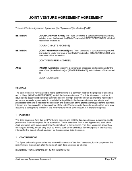 Joint Venture Agreement Sample form