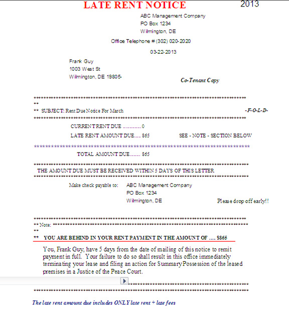 Late Rent Notice To Tenant