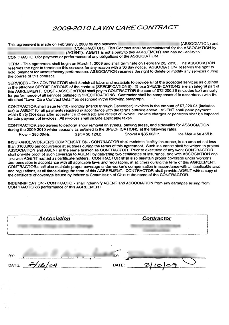 Lawn Care Contract Templates form