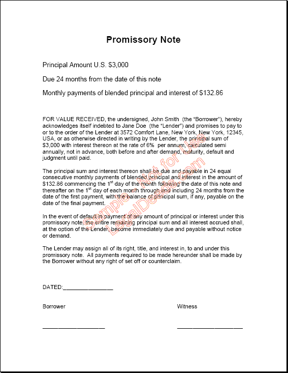 Sample Legal Promissory Note