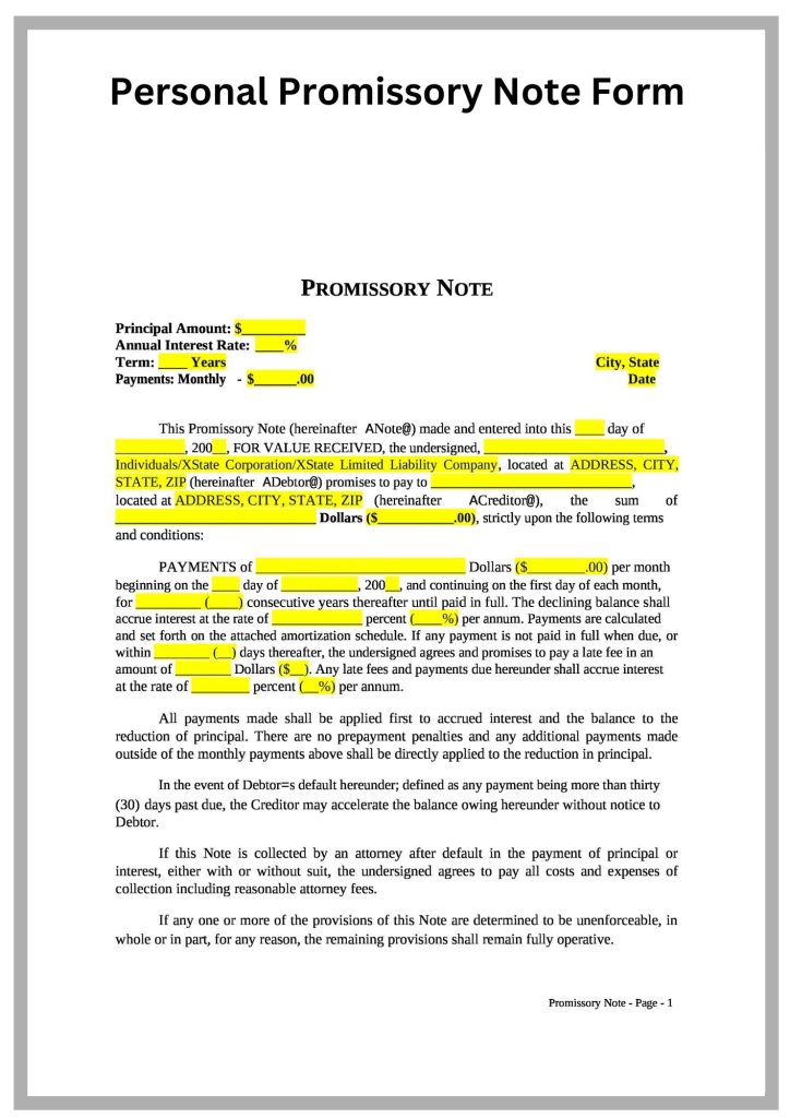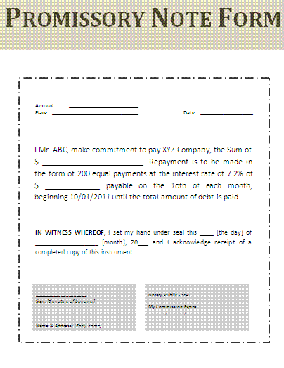 Legal Promissory Note form