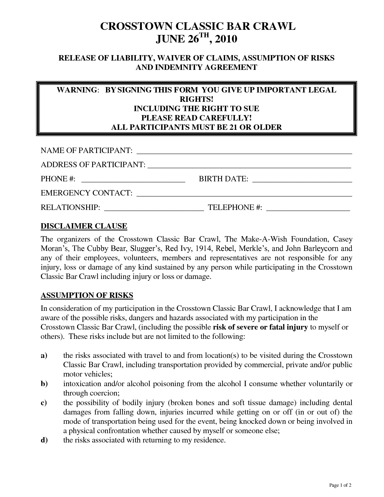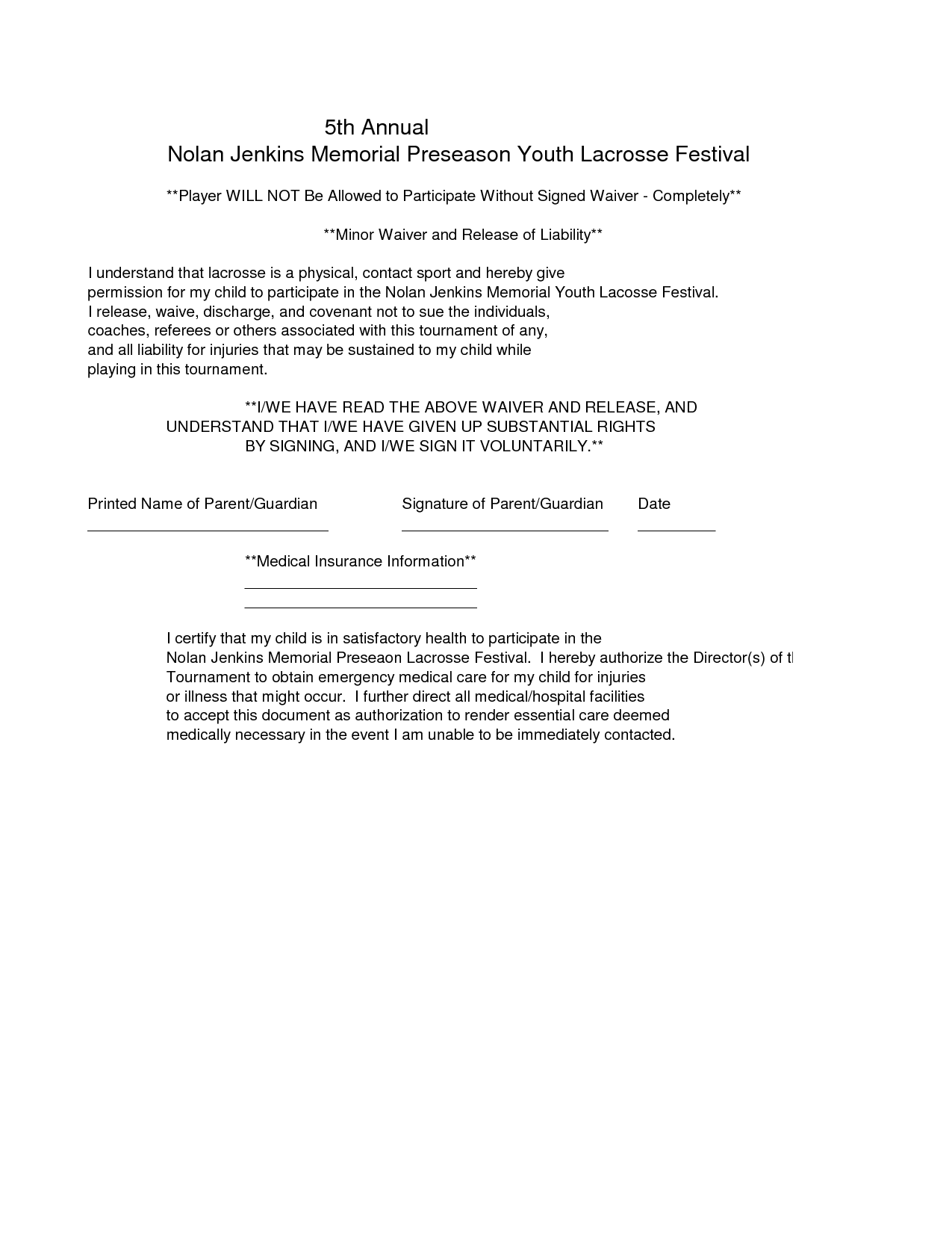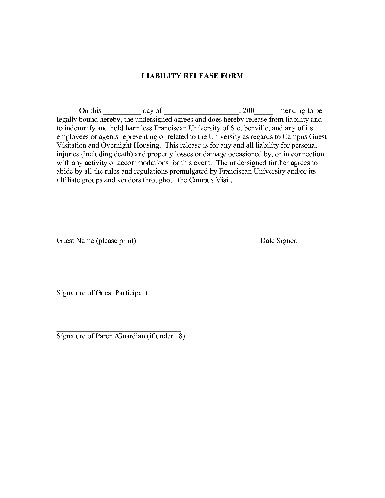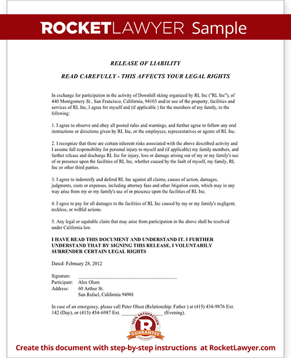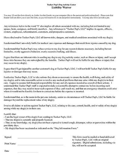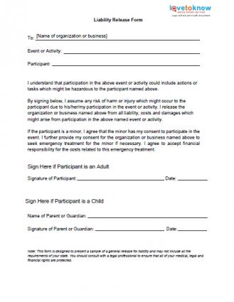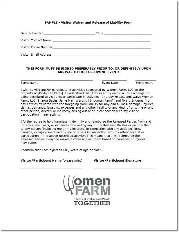 Liability Waiver Form Sample