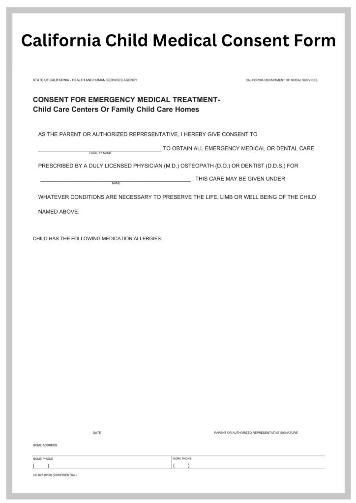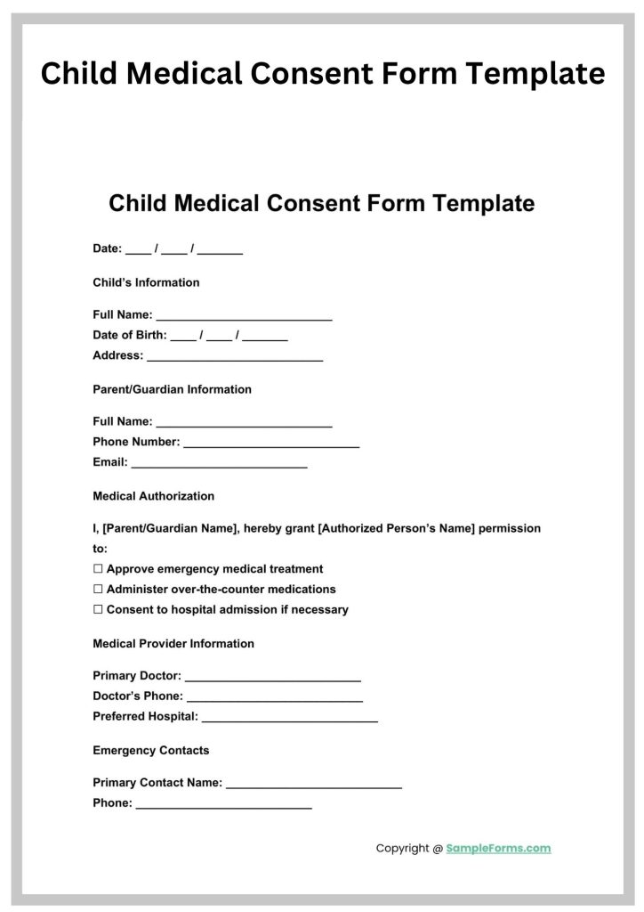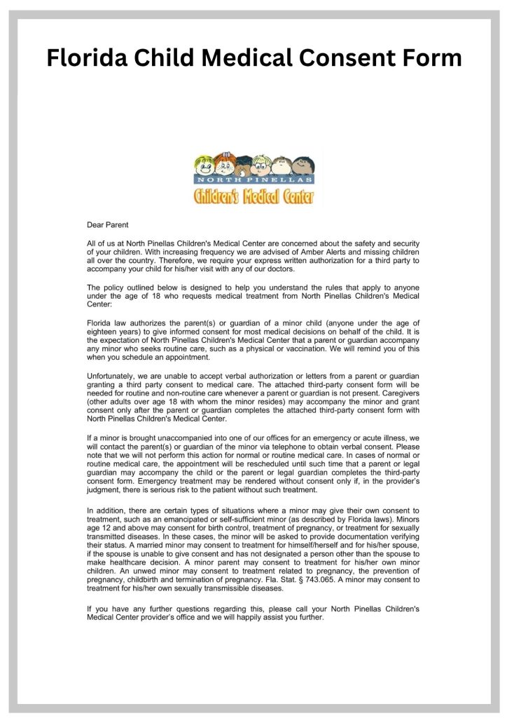 Parent Consent Form For Medical Treatment form
