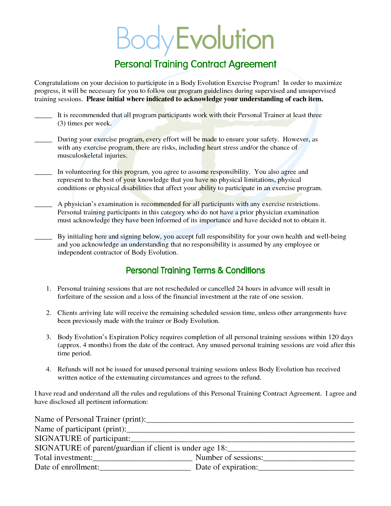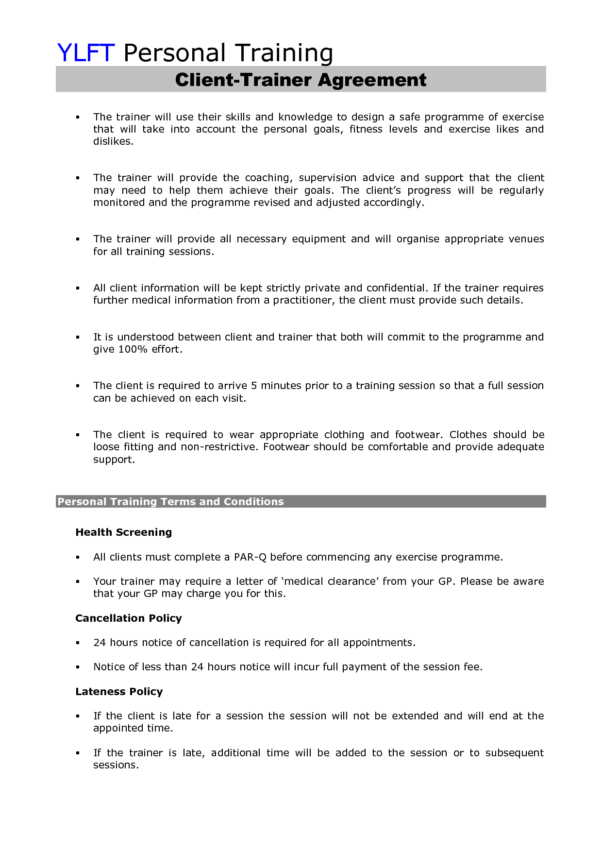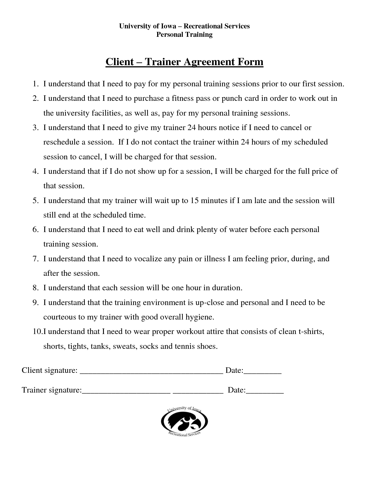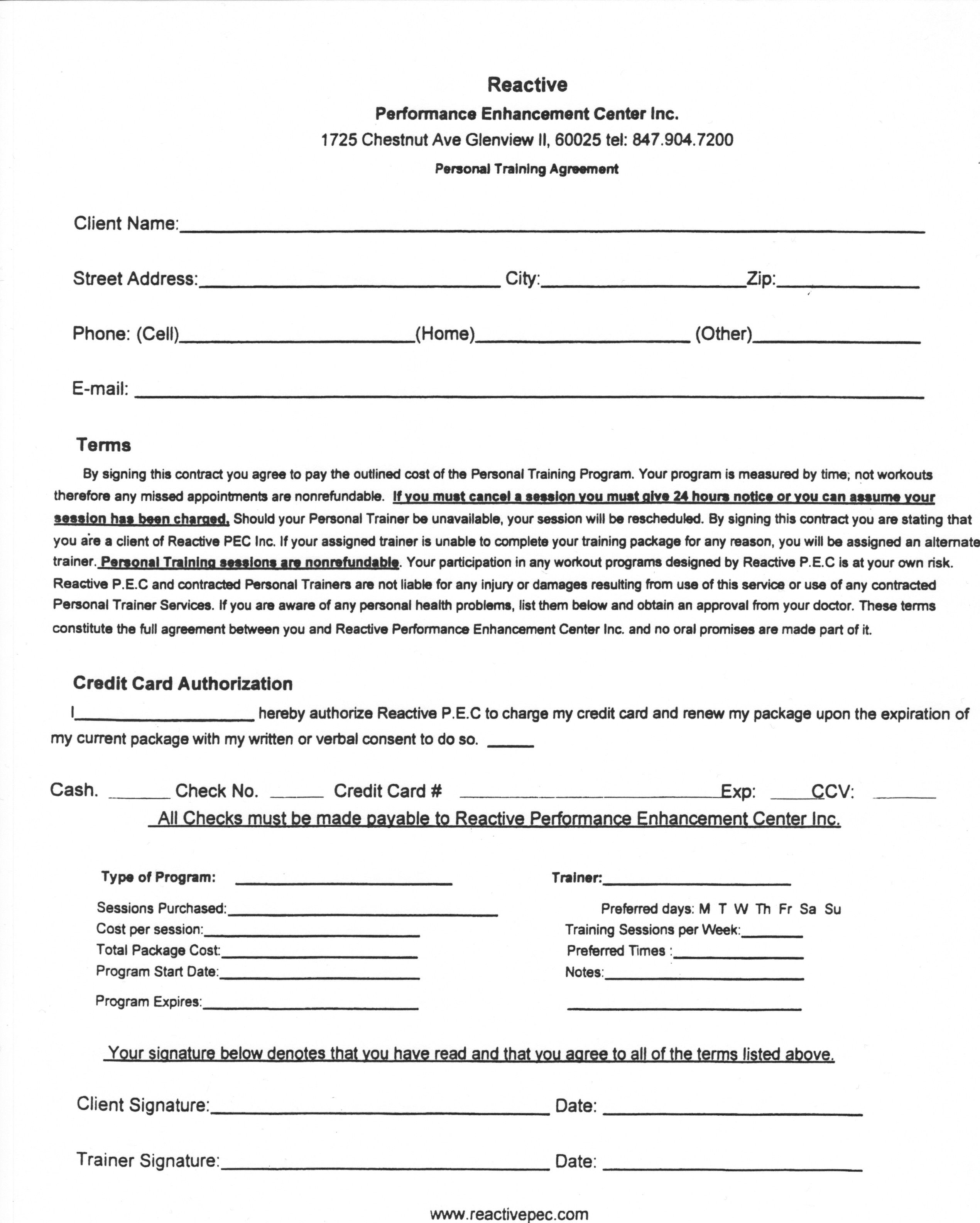Sample Personal Training Agreement