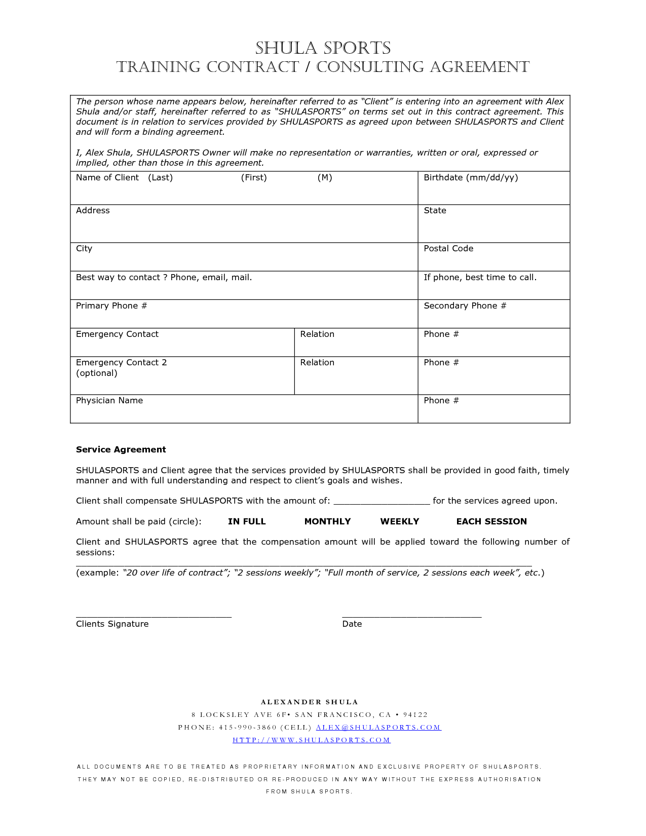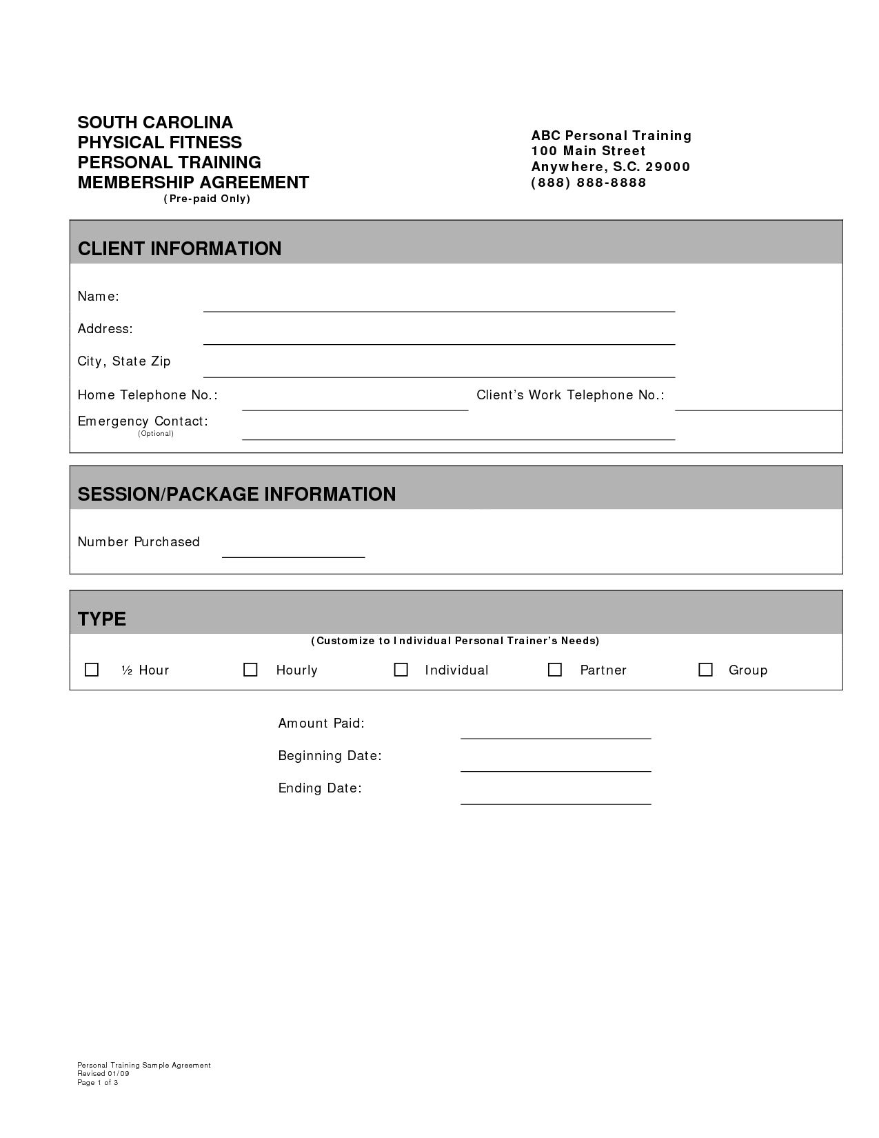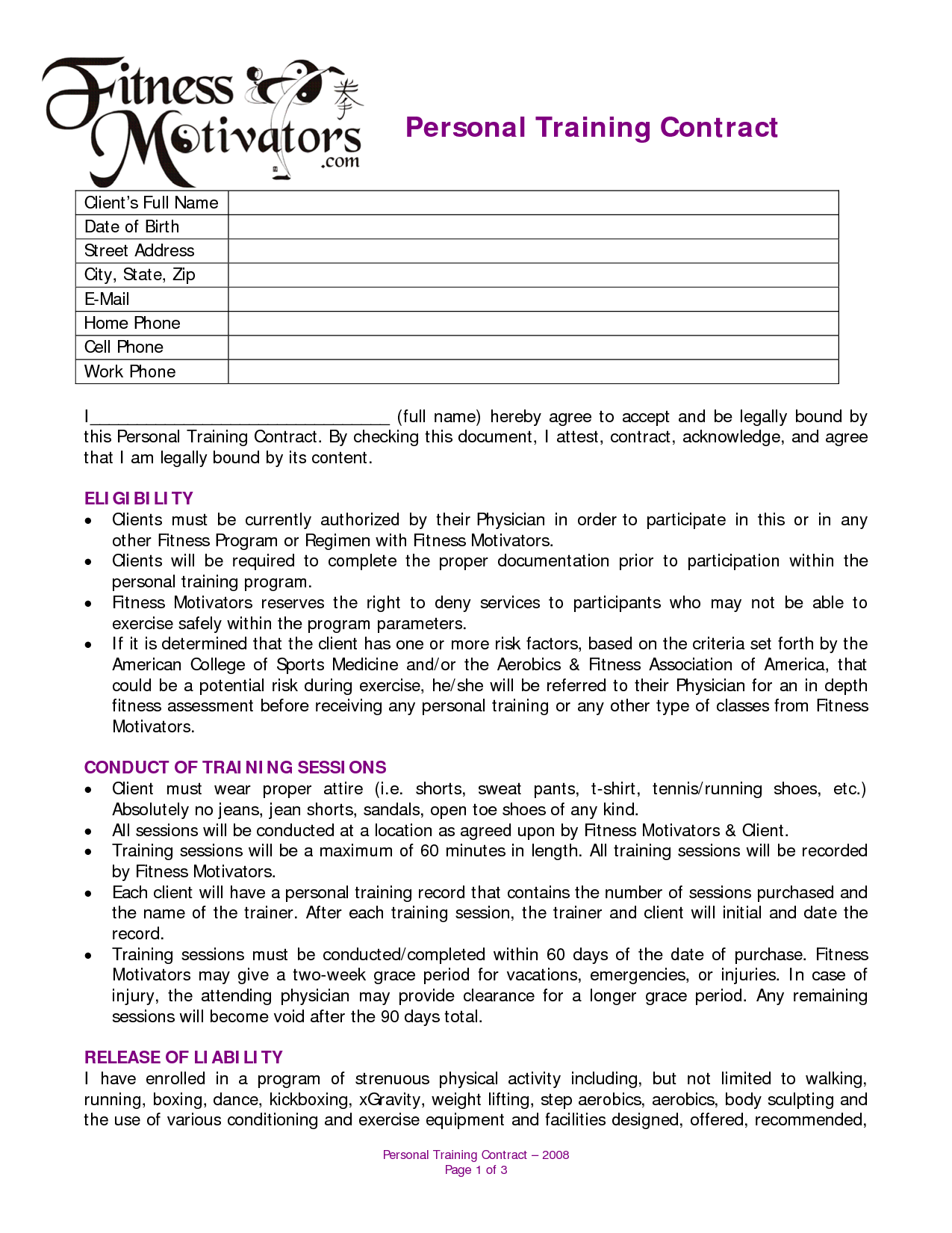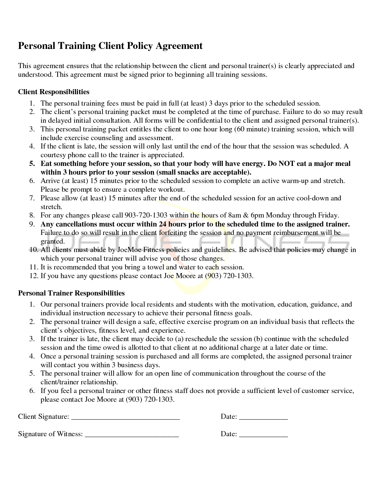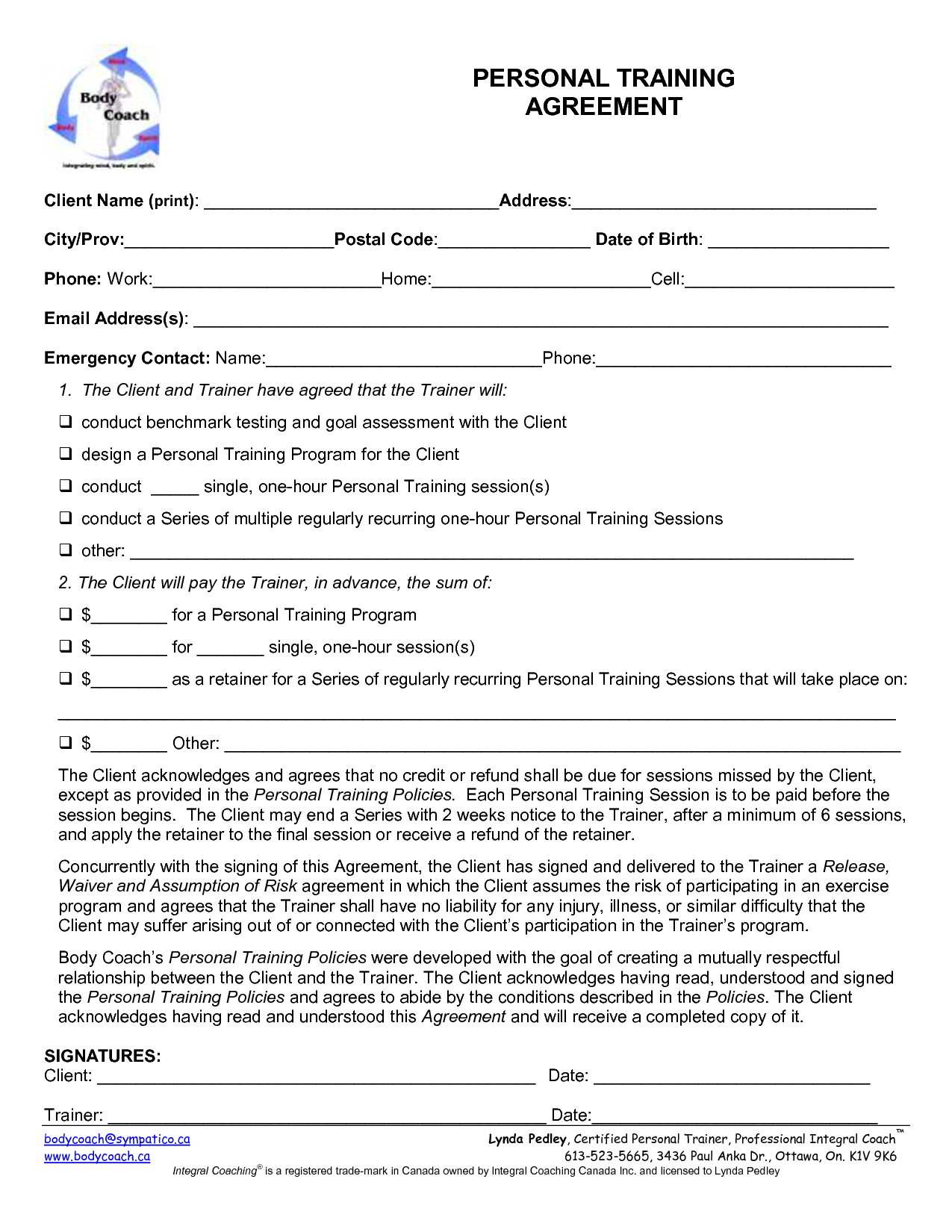Sample Personal Training Agreement