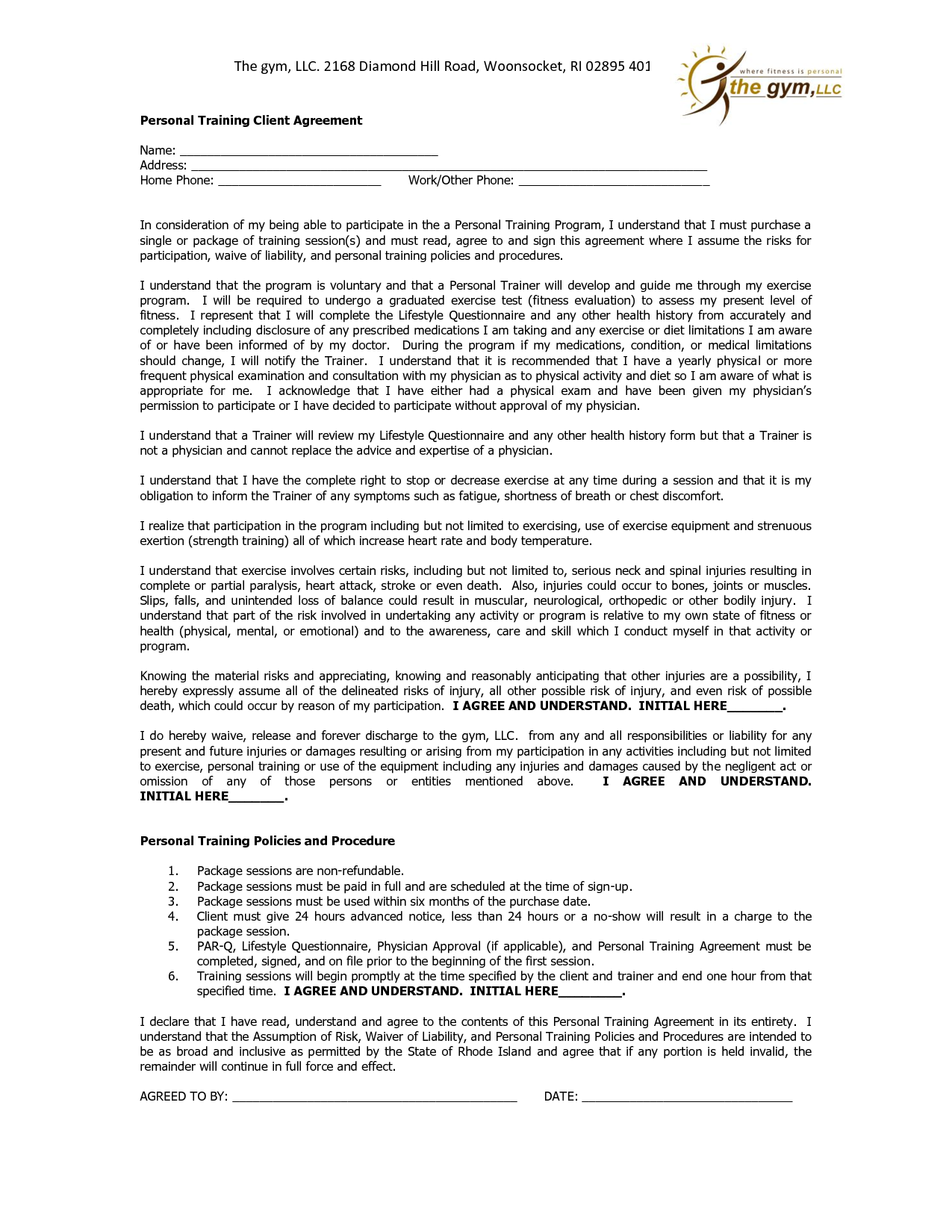 Personal Training Agreement