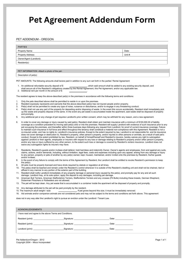 Pet Sitting Contract Template form