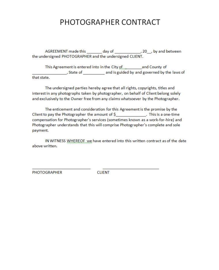 Download Free Photographer Contract Template from our site.Obtain from different filetype like Micrsoft Document, Pdf, Google document, Rtf, Otd, Microsoft Docx, Zip.