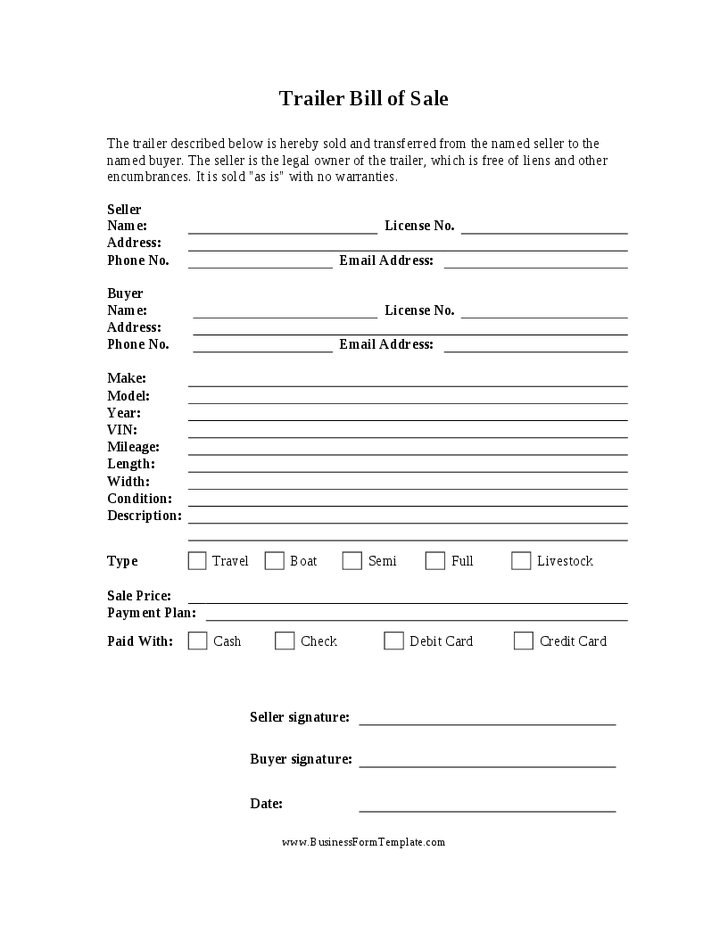 Printable Bill Of Sale For Travel Trailer