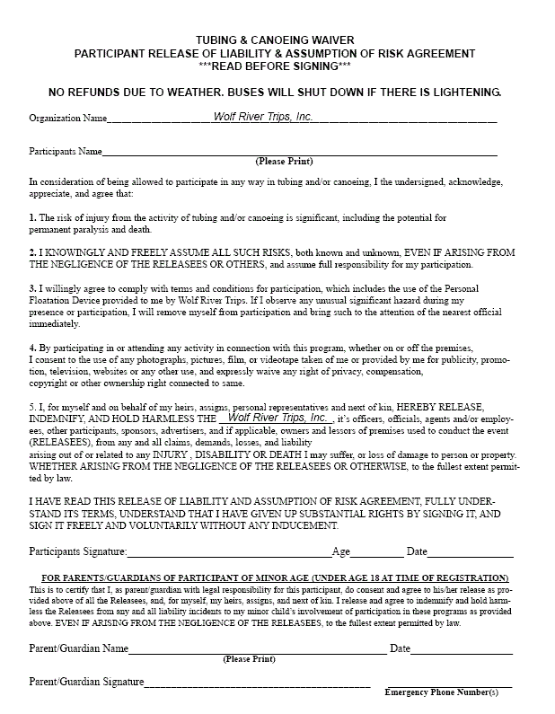 Release Waiver Template