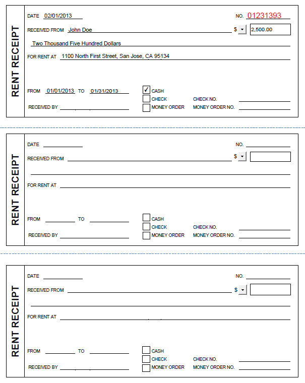 Rent Receipts form