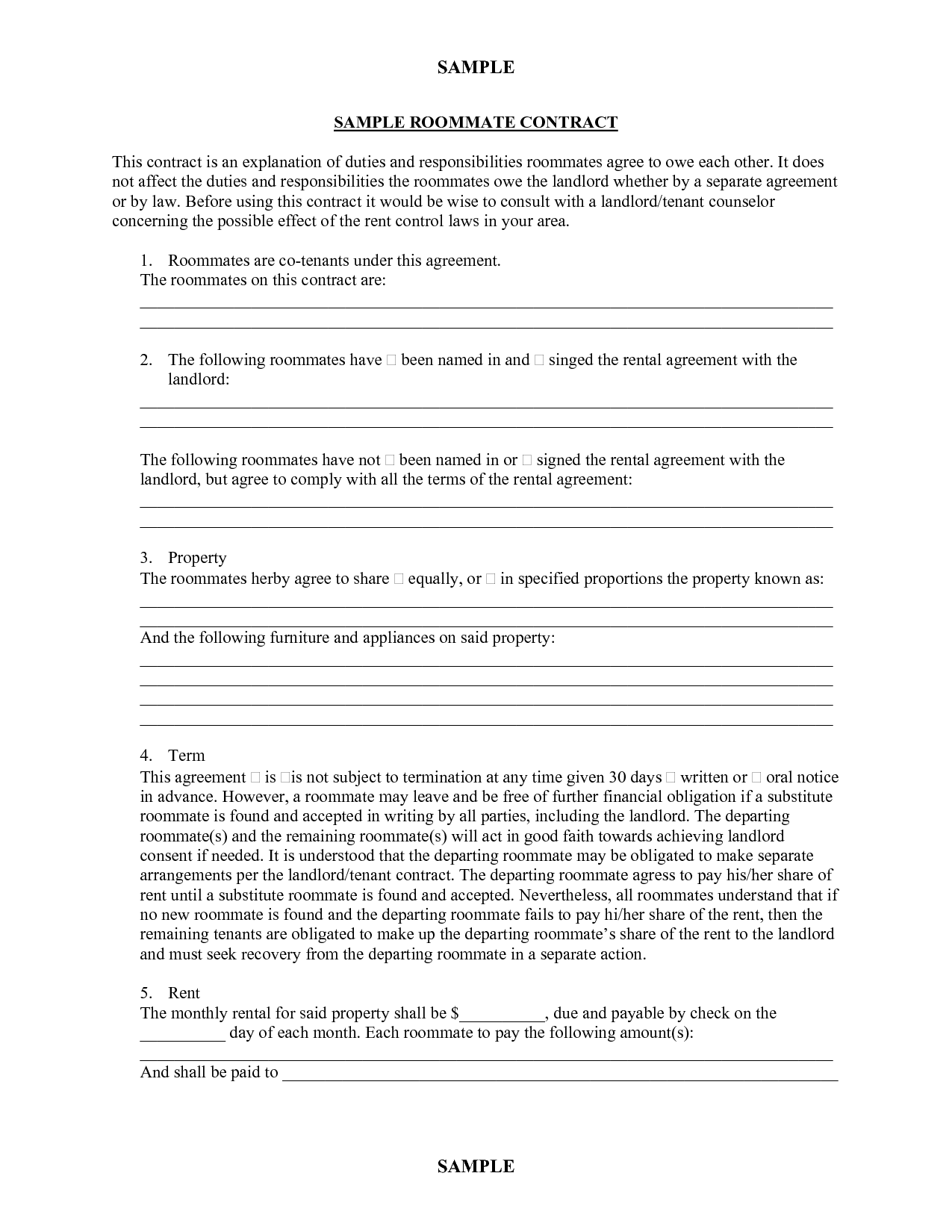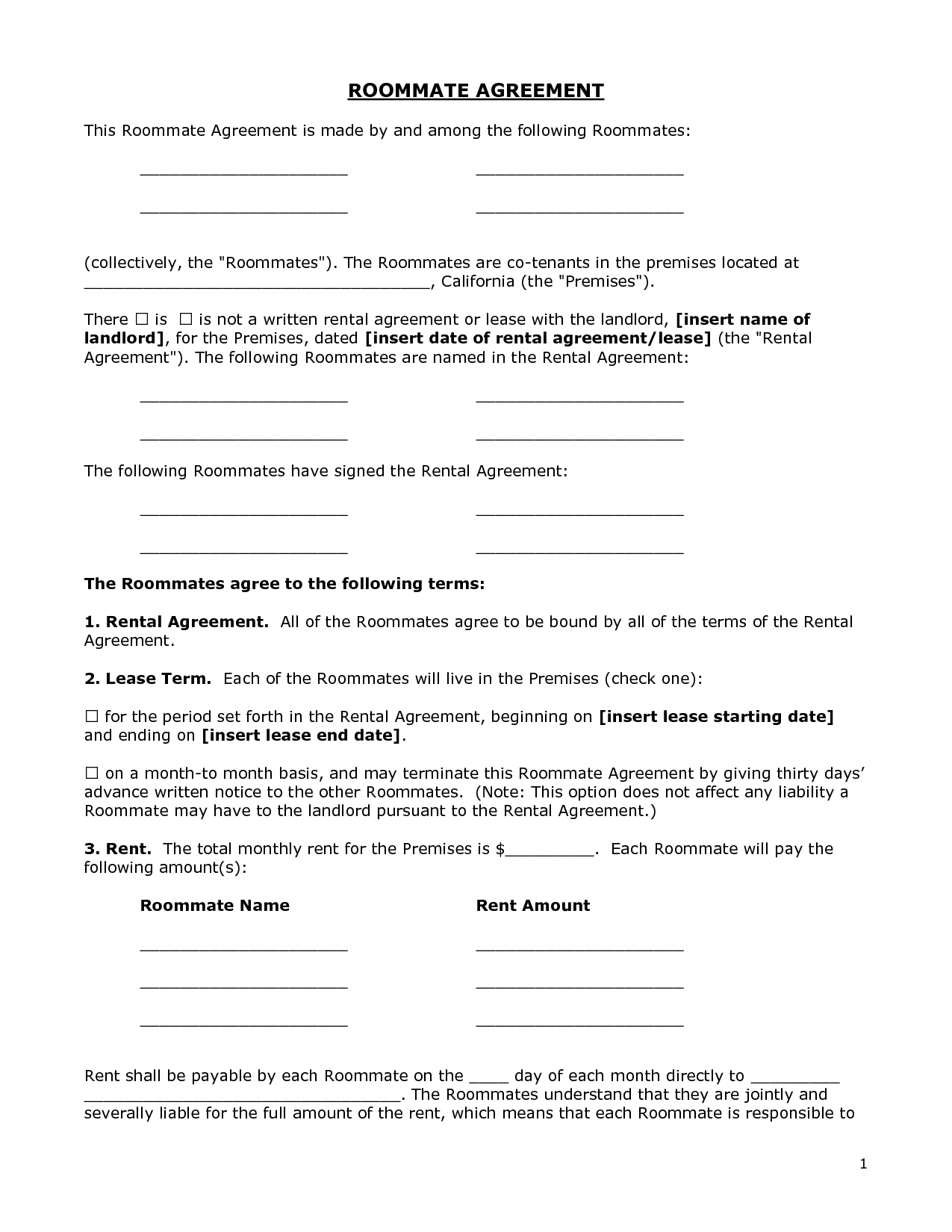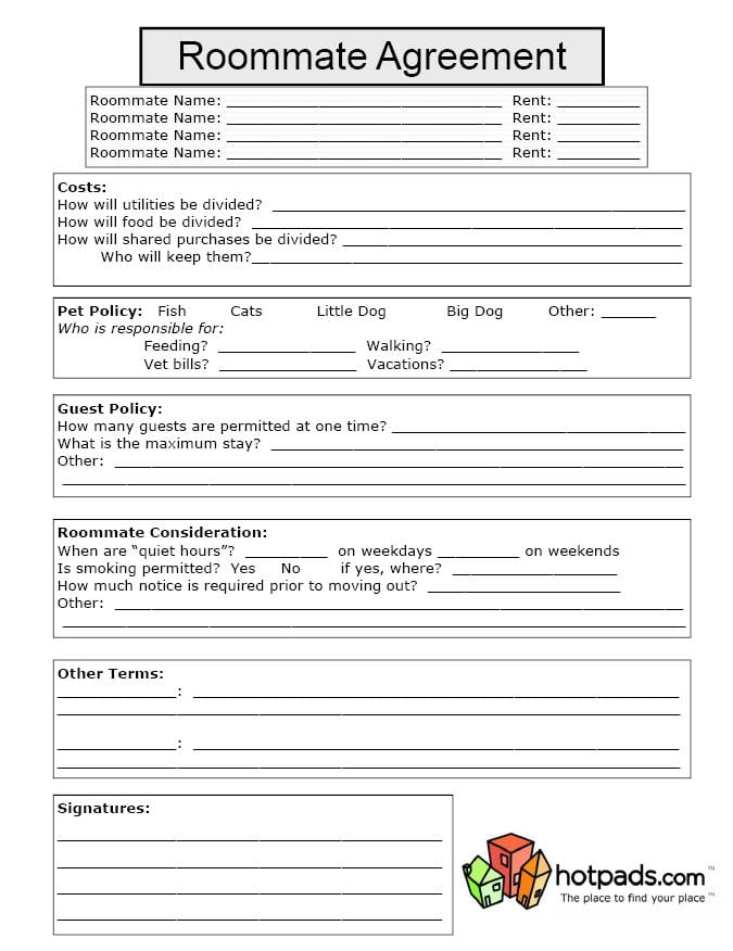 Roommate Agreement Template Free