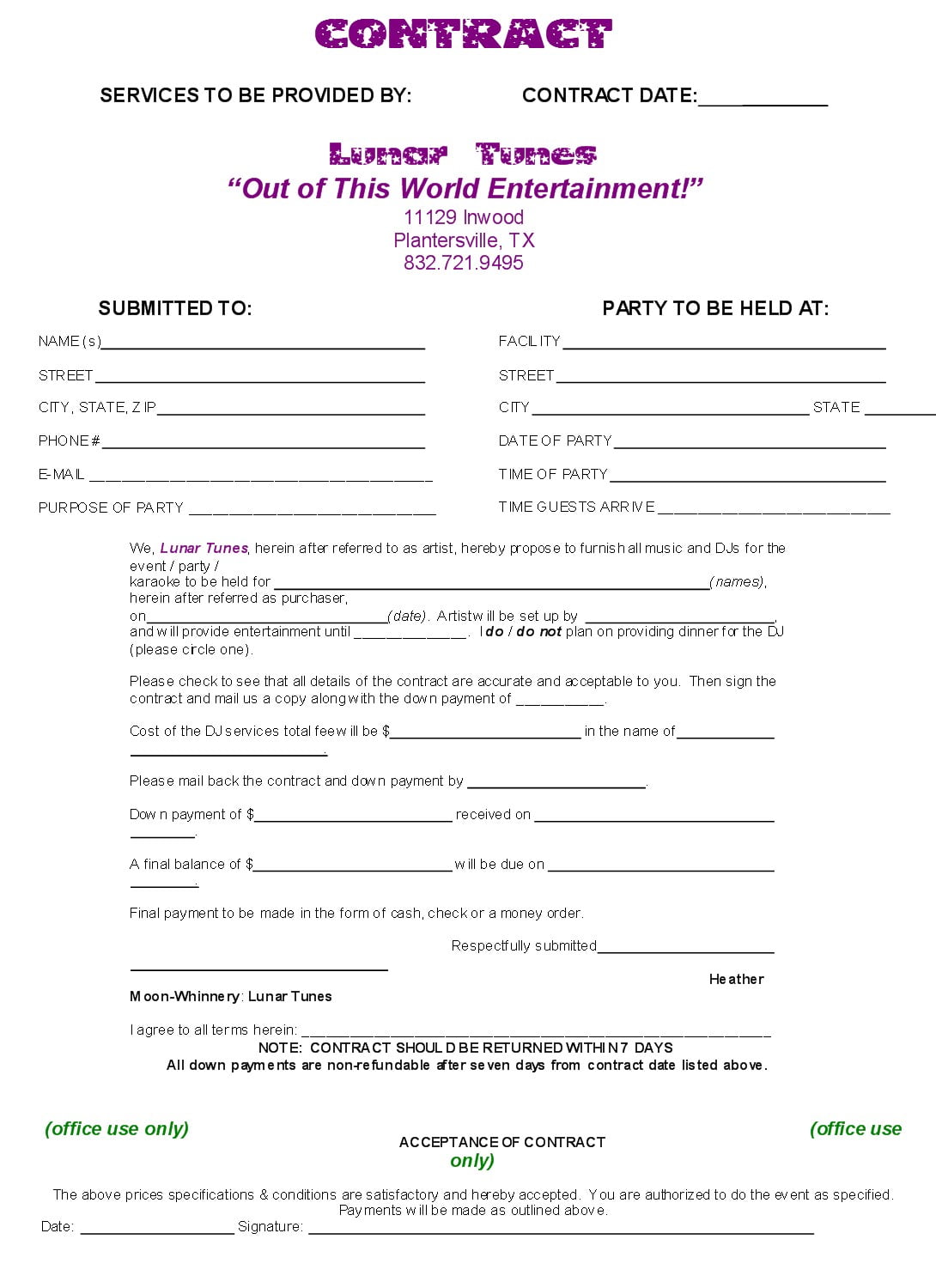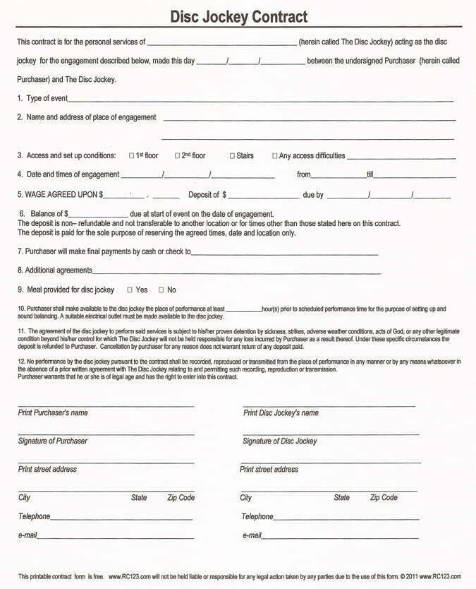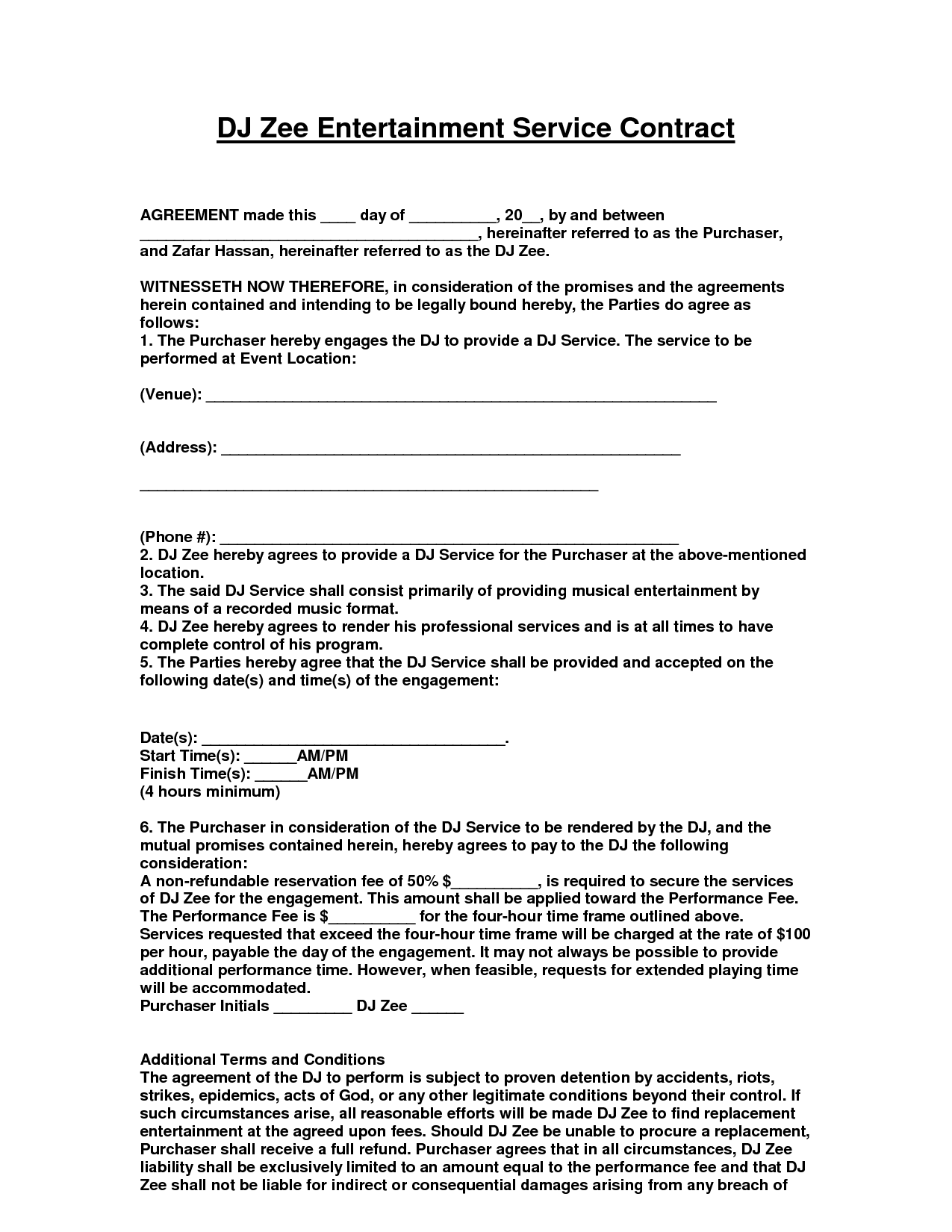 Sample Dj Contract Agreement