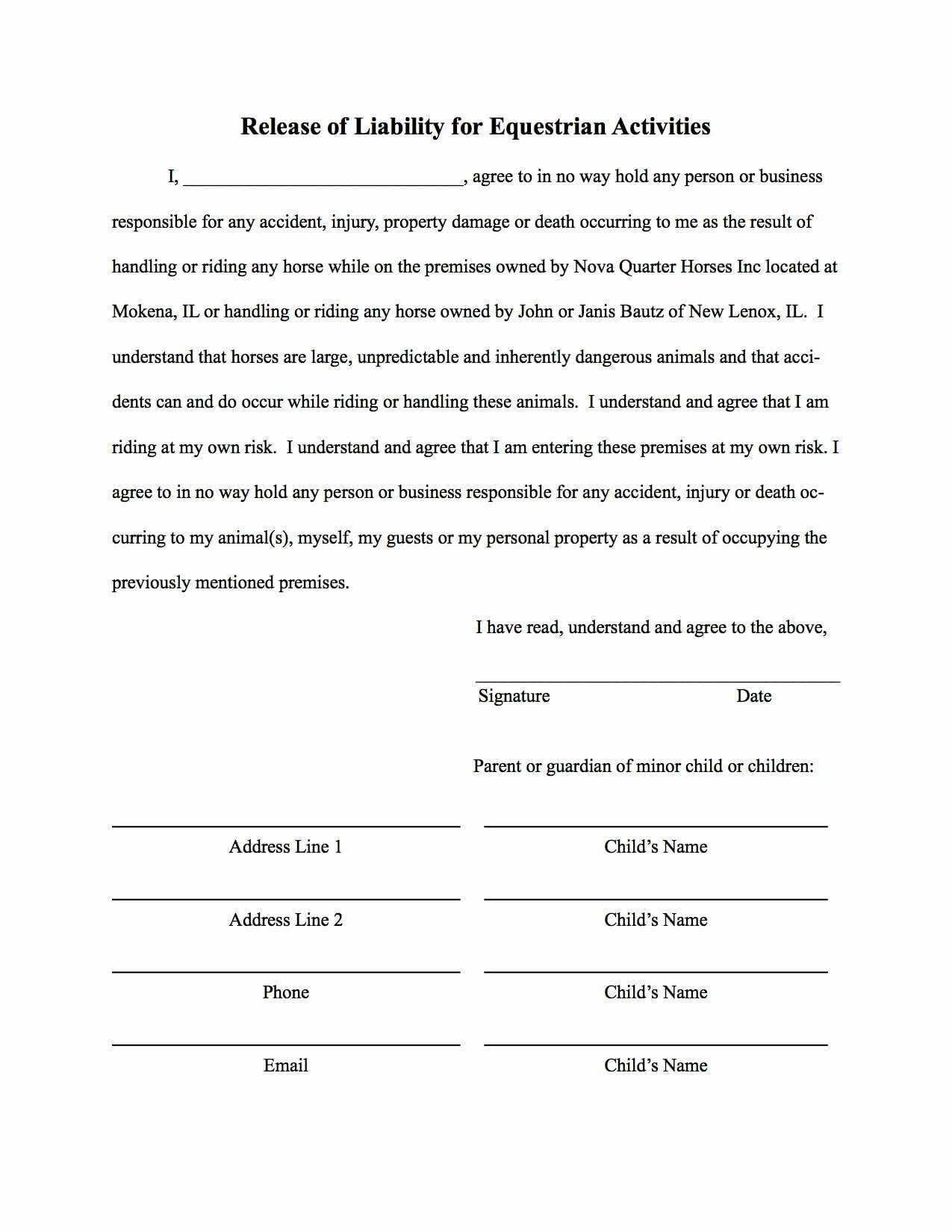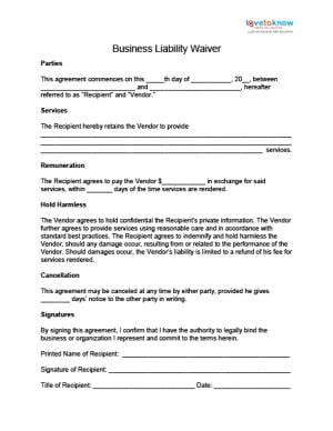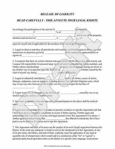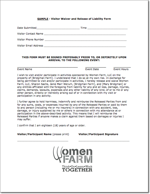 Waiver And Release Of Liability Form