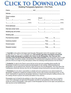 Get Printable Wedding Photography Agreement Form from our site.Download from any filetype for example Rtf, Microsoft Docx, Micrsoft Document, Otd, Pdf, Google document, Zip.