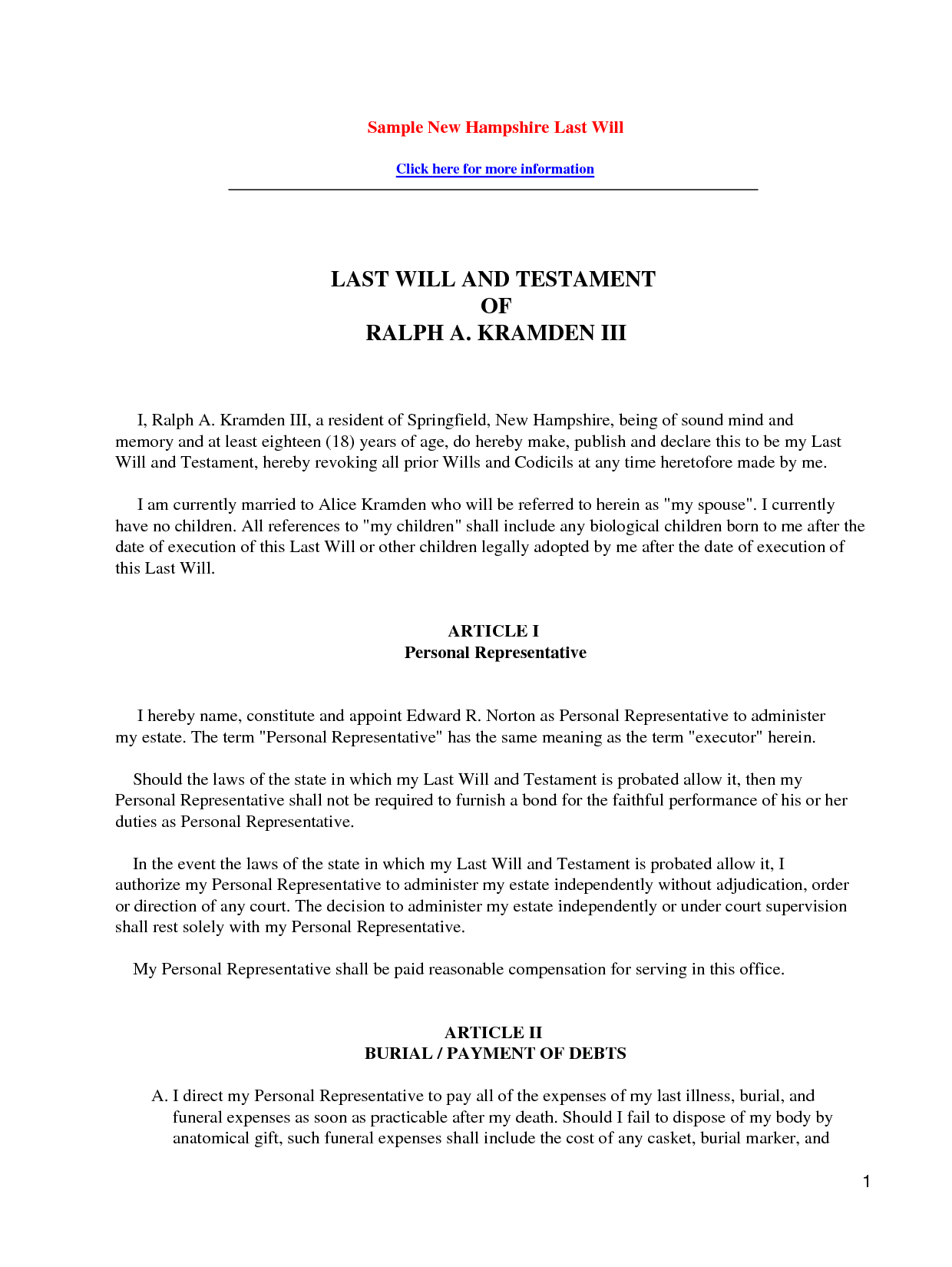 Will And Testament Template